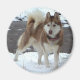 Un Husky rojo donde le gusta ser el mejor, jugando en la nieve.