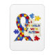 Un pedazo del rompecabezas que me lee 'ama a un niño con autismo", los pedazos del rompecabezas de azul, de rojo, y amarillo y la cinta de la conciencia del autismo en las camisetas de la conciencia del autismo, las sudaderas con capucha, las tazas, los imanes, las tarjetas, los pegatinas, los bolsos, los llaveros, los botones, y otros artículos.