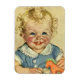 Niños de ilustracion y bebés de época con una imagen de un bebé escandinavo con la cabeza de hermosos rubios rubios sosteniendo un juguete, un caballo de dala sueco. ¡Sonriendo, riendo y divirtiéndose!