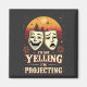 Gracioso diseño de circo y teatro, retro alegre y disgustado, humor amante del teatro, chiste de proyección para los artistas, tema del circo y la actuación, diseño de arte dramático y escénico, máscaras cómicas y tragedias, gráfico divertido de actuación, humor de teatro en voz alta, chiste de los amantes del circo