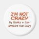 ¡No estoy loco! Mi realidad es diferente a la tuya. Una declaración graciosa y tonta. Este dicho gracioso en muchos productos.