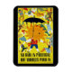 Poster de viajes de época "No hay lluvia en Portugal". ¡Pero el turista se mete", mostrando un sol personalizado con un paraguas en un "aguacero" de turistas exóticos!