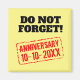 No olvide el imán de frigorífico divertido del día del aniversario del boda. Añada su propia fecha de personalizado en el borde del sello rojo vintage. Graciosa idea de regalo de boda para recién casados, marido y mujer, novia y novio, pareja, etc. Regalos de Guay para él y para ella.