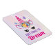 Un imán flex con una cita inspiradora que dice: No olviden soñar. Diseñado con un unicornio rosa de moda. Decorado con un elegante cabecero de flores. Unas mariposas extravagantes revoloteando por ahí. Fondo de color púrpura pálido, rosa y amarillo.
