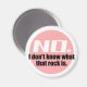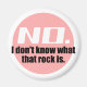 Este imán refrigerador tiene un logo rosado con el texto "No. No sé qué es esa roca". Para aquellos que reciben demasiadas peticiones de nombres de rocas misteriosas.