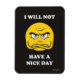El gráfico de emoji "No tendré un buen día" diseñado por bCreative muestra un gruñón emoticono con los brazos cruzados. ¡Esto es un gran regalo para la familia, los amigos o un regalo para usted mismo! Este gráfico divertido es una gran adición al estilo de cualquiera. bCreative es un creador líder y licenciante de diseños y propiedades originales y de moda. ©LCT Creative. Licencia de bCreative.com