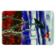 En un cielo nocturno con algunas nubes, hay una luna llena de color rojo que se eleva sobre una agrupación de montañas y colinas. Un cuervo está encaramado en una rama de un árbol Birch muerto que da al bosque de árboles con hojas rojas. Derechos reservados ©2018 Kimberly J Tilley.