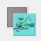 Parece que va a ser un momento divertido con esta kitschy noche de Chicas retro en el imán cuadrado. El diseño de arte minimalista, al estilo de los años 60, cuenta con dos mujeres con cócteles rosas en una moderna sala de estar totalmente de mediados de siglo, con un ambiente moderno, acuático y turquesa. Estas señoras sin duda saben cómo relajarse. La belleza del cabello cuervo en el vestido verde, coquetón, está tumbado en el sofá atómico. Su compañero rubio está sentado sobre una alfombra de papel de cebra, con un top rojo y pantalones ajustados y negros. El reproductor de discos de vinilo vintage y las lámparas de linterna de papel dan un toque de humor. Sobre el sofá moderno cuelga una estampa enmarcada, de época espacial, de estampado artístico.