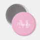 Imán Nombre curvo y monograma de aspecto corto | Rosa