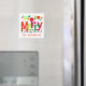 El diseño colorido de este imán festivo incluye el texto "Feliz Navidad" en la tipografía moderna con un nombre familiar para que lo personalizes. El fondo está decorado con puntos de polka en tonos vivos rojos, verdes y naranjas. Diseñado por el artista © Tim Coffey