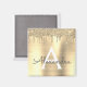Imán de fiesta con monograma y nombre de metal cepillado con brillo metálico dorado. Esto hace que sea el regalo perfecto para cumpleaños de sweet 16, boda, despedida de soltera, aniversario, baby shower o fiesta de soltera para alguien que ama el lujo glamoroso y los estilos chic.