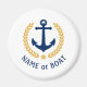 Un imán redondo personalizado con el nombre de su barco, el apellido u otro texto deseado según sea necesario. Con un ancla náutica diseñado por un personalizado, hojas de laurel de estilo dorado y emblema estrella sobre blanco o ajustar fácilmente el color primario para que coincida con el tema actual.
