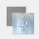Personaliza fácilmente este diseño de imán de moda de moda con purpurina brillante de bonito plateado sobre fondo metálico cepillado azul.