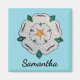 En este imán cuadrado de 2" (5 cm) con fondo de color azul óseo de roble se muestran el símbolo de la rosa blanca de Yorkshire acolchado en papel intrincado y el nombre del guión negro. Cambie fácilmente el nombre para que sea suyo utilizando la plantilla proporcionada. Ideal como un pequeño regalo, empresa o negocio, favores de fiesta, el Día de Yorkshire, y formas más reflexivas de dar. Impreso en papel 100% reciclado. Cubierta con arañazos y Mylar resistente a los rayos UV. Consulte "Acerca de este producto" al lado para obtener más información. Símbolo de la rosa blanca de Yorkshire acolchado con papel, ©2021 Molly Smith en Wakefield, West Yorkshire, Reino Unido.