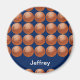 Este imán de nombre personalizado está decorado con baloncesto sobre un fondo azul oscuro. Es fácil modificar o eliminar el texto de ejemplo. Qué maravilloso obsequio de medias o fiesta de cumpleaños para los niños. Gran regalo para jugadores de baloncesto, fans, entrenadores o mamás de baloncesto. Todos los derechos reservados © 2014 Alan & Marcia Socolik.