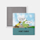 Este divertido imán frigorífico de diseño de geocalización de nombre personalizado tiene un personalizado con un geocámara llegando y diciendo: "Debería estar detrás de este arbusto. Seré el FTF. ¡Guau!" Al otro lado del arbusto hay un cocodrilo sonriente. Agregue su nombre o texto personalizado en la plantilla para personalizarlo o eliminarlo. Haga clic en personalizar para cambiar la fuente. Hace un regalo divertido para tus compañeros de geocalización extremos. Más diseños en Geocache Stuff.