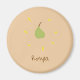 Un toque personalizado añade un elemento de encanto a una pera pintada a mano, donde un nombre personalizado está delicadamente escrito, creando una singular y entrañable pieza central artística en un cálido fondo marrón tierra. Los trazos sutiles pero intrincados del nombre se complementan con elegancia con la forma orgánica de la pera, formando una mezcla armoniosa que emana de un encanto rústico y moderno.