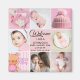 Imán Nombre personalizado Rosa Chic y collage de fotos