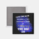 Guarde el recordatorio del imán de la nevera de dátiles con el nombre y fecha personalizados y fuegos artificiales azules.