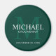 Añada un toque personal a su boda con un imán de abarrotes personalizado. Este imán presenta el nombre personalizado del groomsman con título y fecha boda en blanco y monograma en verde esmeralda claro como fondo, en estilo clásico de letra serif, sobre fondo verde esmeralda. También perfecto para el mejor hombre, padre de la novia, portador de anillo y más.