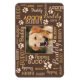 Brown Regalo personalizado de o para tu perro. Personalizable con la imagen de tu perro o gato con el nombre de tu perro o gato. Cuando cambies el nombre de Buddy por el de tu propio mascota, cambiará todos los nombres tipográficos al mismo tiempo. Tipografía de arte en la nube de palabras. Diferentes tipos de letra y estilos en huellas de pata marrón y beige que se ven estupendos con una casa de estilo rústico granero. Diseño moderno y de diseño. Todo es personalizable. Puede cambiar el color de fondo marrón, cambiar el estilo de fuente, el tamaño y el color. La plantilla de la foto es de un recuperador marrón claro/dorado.