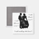 Una silueta negra de una novia y un novio bailando. El texto dice: "Guardar la fecha". Incluye texto de personalizable para añadir los nombres de la novia y Groom y la fecha de boda. Este diseño funciona mejor en un imán cuadrado. ¡Compra más y ahorra!