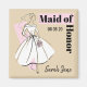 Un diseño de estilo de mediados de siglo con un toque retro con un dibujo de una novia en rosa y blanco sobre un fondo de cambio de color neutro. Inspirado por los patrones de vestimenta y los ilustraciones de moda de los años 50 y 60. Un diseño de personalizable para que puedas personalizar con tu propio texto, imágenes e ideas. Imagen original de arte digital creada por Jess Perry en QuirkyChic Retro.