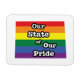 Este colorido diseño presenta el estado de Wyoming construido en un arcoiris.