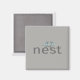 Imán de Nuestro Nido Texto Con Dos Pájaros. Texto gris "Nuestro Nido" con dos pájaros enfrentados. Diseño de Vida Sencilla.