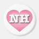 Este imán presenta un corazón rosado con un centro lavado de blanco que contiene las letras negrita, blanca y funda superior NH, la abreviatura oficial de New Hampshire, el estado de granito.