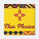 Gran imagen que presenta el patrón nativo americano en el fondo con la redacción Nuevo México y Santa Fe. Incluía el sello del estado de Nuevo México.