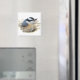 ¡Este imán está decorado con un Nuthatch de pechos rojos que parece que se está haciendo cargo! Es un pájaro muy pequeño con una pechuga de color rojizo, la espalda azul-gris y una franja de ojos negra. Su cabeza y su pico son muy grandes en proporción a su cuerpo.