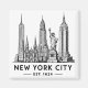 Celebrate the timeless beauty of New York City with this clean and modern skyline line art design. Featuring iconic landmarks including the Statue of Liberty, Empire State Building, Chrysler Building, and One World Trade Center, this minimalist illustration captures the spirit of NYC in a stylish black-and-white aesthetic.
