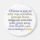 ¿Obama es un socialista pacificador? Sólo un mito republicano. Ha aumentado las guerras y no ha logrado regular Wall Street, y Obamacare no ha ido lo suficientemente lejos como para ayudar a todos los estadounidenses. Así que es irónico que el Partido Republicano, el fiesta de los valores cristianos conservadores, no se dé cuenta de lo que era un progresista Jesucristo: alimentado a los hambrientos, hecho la otra mejilla, combatió a los cambistas de dinero. ¡Y Dios mío, él también era un "extranjero"!