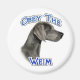 Tu Weimaraner es la cabeza de tu casa y la jefa suprema. Muestra al mundo el poder de tu perro de la raza AKC con este "Obedezca al Weimaraner en una camiseta, taza, llavero, botón, imán y más.