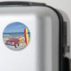 Imán de personalizable divertido con todo lo bueno, un laboratorio amarillo sonriente, gatos graciosos, un convertible Woodie y una playa. Puedes añadir un texto divertido. El fondo oceánico y Woodie son dos imágenes gracias a PublicDomainPictures.net. El océano (el fotógrafo Michael Stirling) y el Woodie (el fotógrafo Michael Miloserdoff)