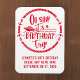 Imán de puerta de crucero de celebración de cumpleaños personalizable. Decora la puerta de tu barco con este divertido marcador de puerta de crucero. Personaliza con el nombre de la persona que cumple años, año, nombre del barco, fecha de salida y destino del crucero. Tenga en cuenta: No todas las puertas de los barcos son magnéticas. No podemos garantizar que su puerta sea magnética. Por favor, consulte con su agente de viajes, la línea de cruceros o a través de foros.