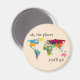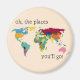 Un imán hermoso con un mapa del mundo colorido y las palabras 'oh, los lugares a los que irás' para tu pequeño.