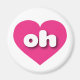 Este imán presenta un vibrante corazón rosado caliente que contiene las letras negrita, blanca, redondeada y baja del funda oh, una abreviatura juguetona para Ohio, el estado de buckeye.