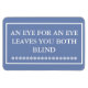 Ha habido muchas interpretaciones. Aquí está el mío. "UN OJO PARA UN OJO TE DEJA A AMBOS CIEGOS" MAGNET White/Blue *Personalizar Susan Brack Design
