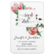 Este diseño de Smell the Rosas es perfecto para un boda durante cualquier mes. Totalmente editable, puede cambiar el color de fondo y todo el color del texto. También se puede cambiar el color de la ilustración "Save the Date". Utilice el vínculo "Personalizar esta plantilla" para introducir su propia información. Si necesita hacer ajustes, haga clic en el botón "Haga clic para más personalizares". Asegúrese de comprobar cuidadosamente la previsualización como LO QUE VEA ES LO QUE ESTÁ IMPRIMIDO. Necesita ayuda, haga clic en el enlace "preguntar al diseñador".