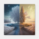 The art featuring one day in winter versus another day in autumn, created in the style of digitally manipulated images, showcase a stunning and realistic depiction of light. The contrasting balance and highly detailed elements come together to offer viewers a visually captivating experience, immersing them in the distinct atmospheres of both seasons.