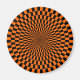 Un diseño de estilo Op Art circular de dos tonalidades, compuesto por círculos de rayas, cada desfase para crear un patrón alternativo.