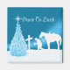 Vaquero rezando en la cruz en una escena de nieve de invierno con su caballo y un árbol con imán de cocina estrella. Pequeños regalos de vacaciones, favores de fiesta y embutidos.