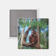 Esta segunda versión del orangután en el imán de la selva tropical tiene la ubicación del país de Indonesia como parte del diseño. El cielo fue una increíble sombra de azul de concha de huevo este día, y el masivo tronco retorcido con viñas entrelazadas proporcionó el lugar perfecto para descansar para este pacífico orangután en la isla de Borneo.