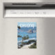 Rectangular, imán frigorífico que muestra la foto de un paisaje marino de la costa de Oregón con una pila de mar. ¡Hace un gran recuerdo de viaje!