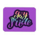 Esta obra de arte muestra un arco iris colorido con las palabras Orgullo Gay.