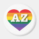 Este imán presenta un corazón con un diseño de orgullo arcoiris y las letras mayúsculas en negrita y blancas AZ, la abreviatura oficial de Arizona, el estado del Gran Cañón. Muestra tus verdaderos colores, apoya el matrimonio igualitario y celebra el orgullo gay.