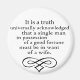 Un diseño de Orgullo y Prejuicio con la primera línea de la novela más famosa de Jane Austen, la historia de Eliza Bennet y el Sr. Darcy.