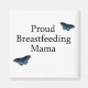 Este imán presenta dos mariposas azules bonitos con texto que lee a la madre orgullosa de amamantar.
